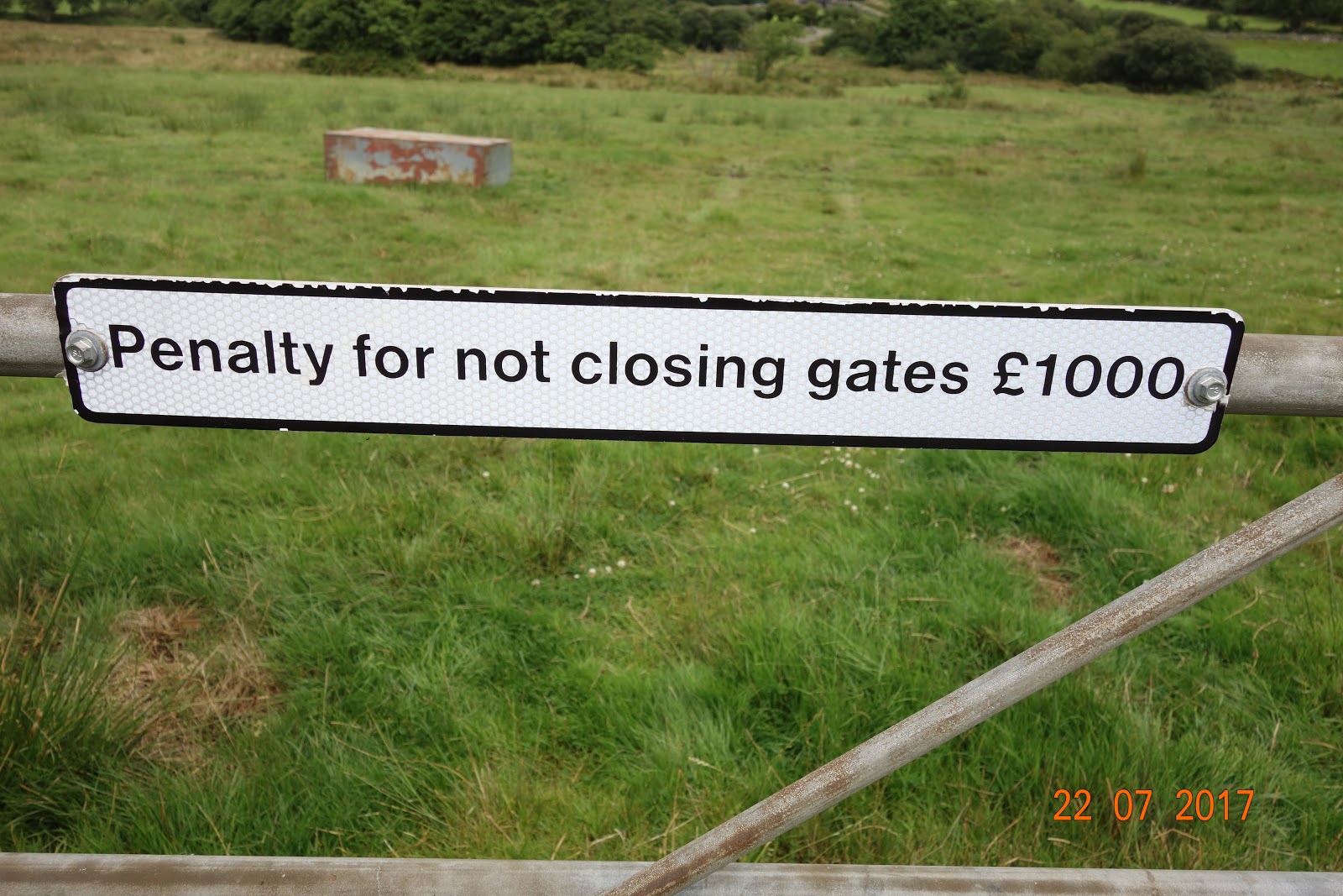 A different sort of penalty, £1000, will keep people remembering to close the gate even though this particular one could not be open due to its being padlocked shut.