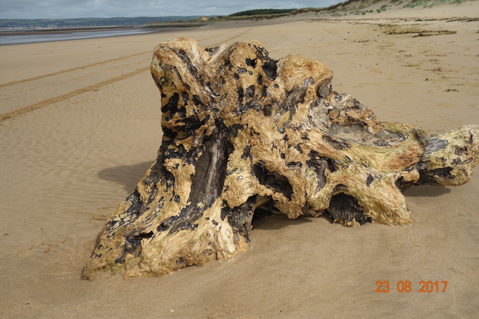Driftwood on the biggest expanse of sand one can imagine. It was the only thing that interrupted the nothingness (except for sand and things that live in the sand, of course) as far as the eye could see: